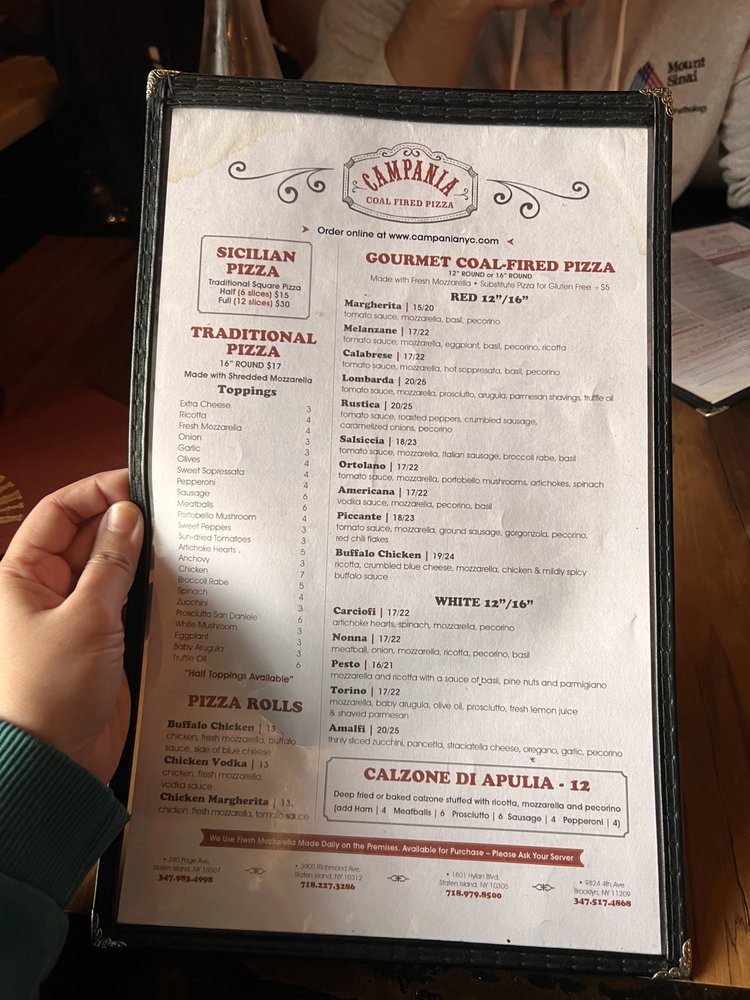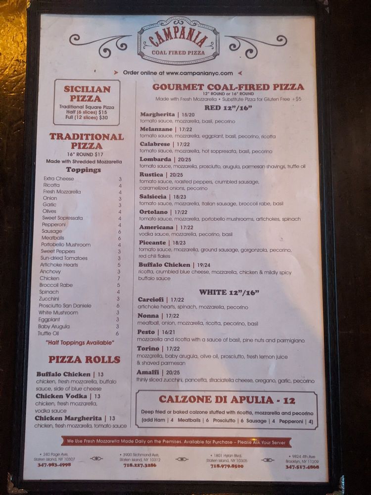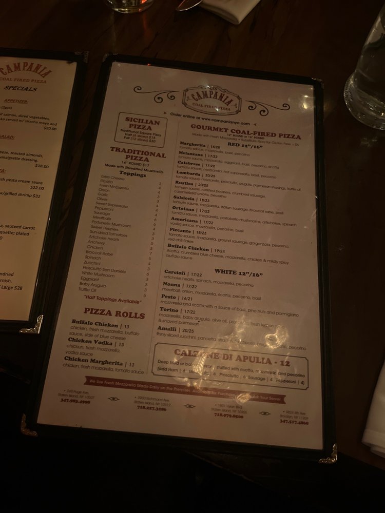 Campania Coal Fired Pizza, located in Brooklyn, NY, offers a diverse menu with a focus on Italian pizza. This restaurant provides various amenities like delivery, takeout, reservations, and outdoor seating. With a welcoming atmosphere and a full bar, Campania is perfect for a casual meal or a group gathering. Customers rave about the delicious food, particularly highlighting dishes like the Lombardi pizza with truffle oil and arugula, and the chicken parmigiana. The attentive service and accommodating staff add to the overall positive dining experience. Whether you're a pizza lover or looking for a great meal in a cozy setting, Campania Coal Fired Pizza comes highly recommended.